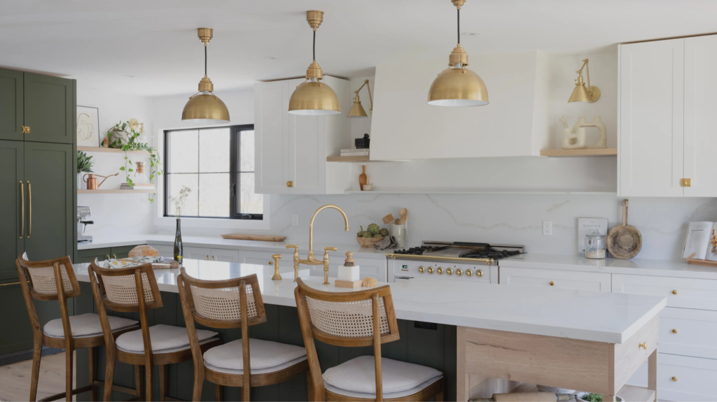 Brighter whites or darker cabinet colors can still work. They simply benefit from thoughtful balance — usually through lighting, hardware, or surrounding finishes — so the space doesn’t feel overly sharp or visually heavy.